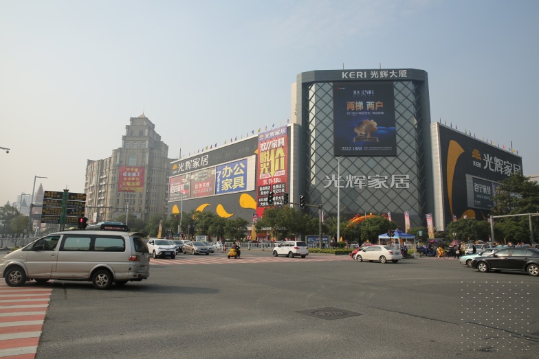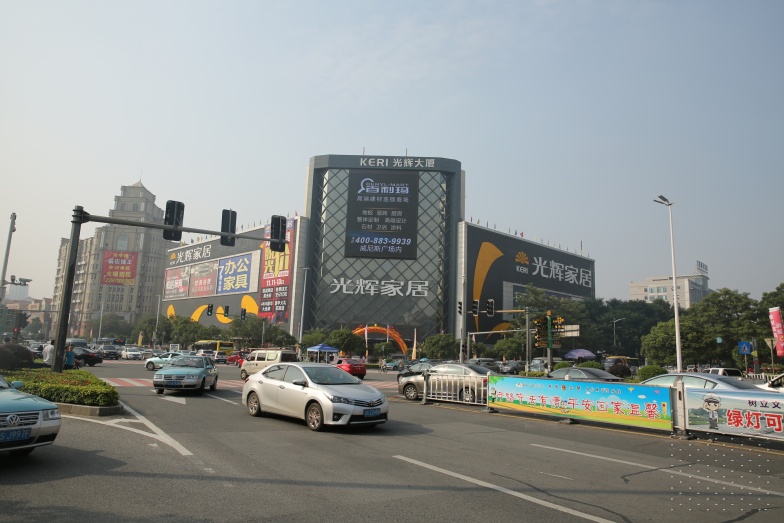东纵路与东城中路交汇处光辉大厦墙面大牌